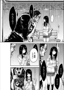 異形の者から、この子見えてるんじゃね?って感じで声をかけられて、関わり合いになりたくないみこちゃんは必死に見える事をごまかします。