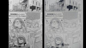 両方を比べると右のKindle端末の方が色合いが薄いというか、全体的に明るいです。