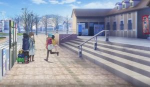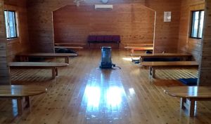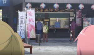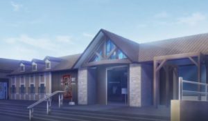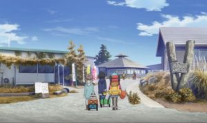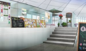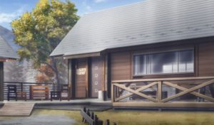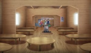 間違えて入り口側から撮ってしまいました。内部がアニメと若干違う気がするのはここが二棟あるうちの左側の休憩所だからかもしれません。